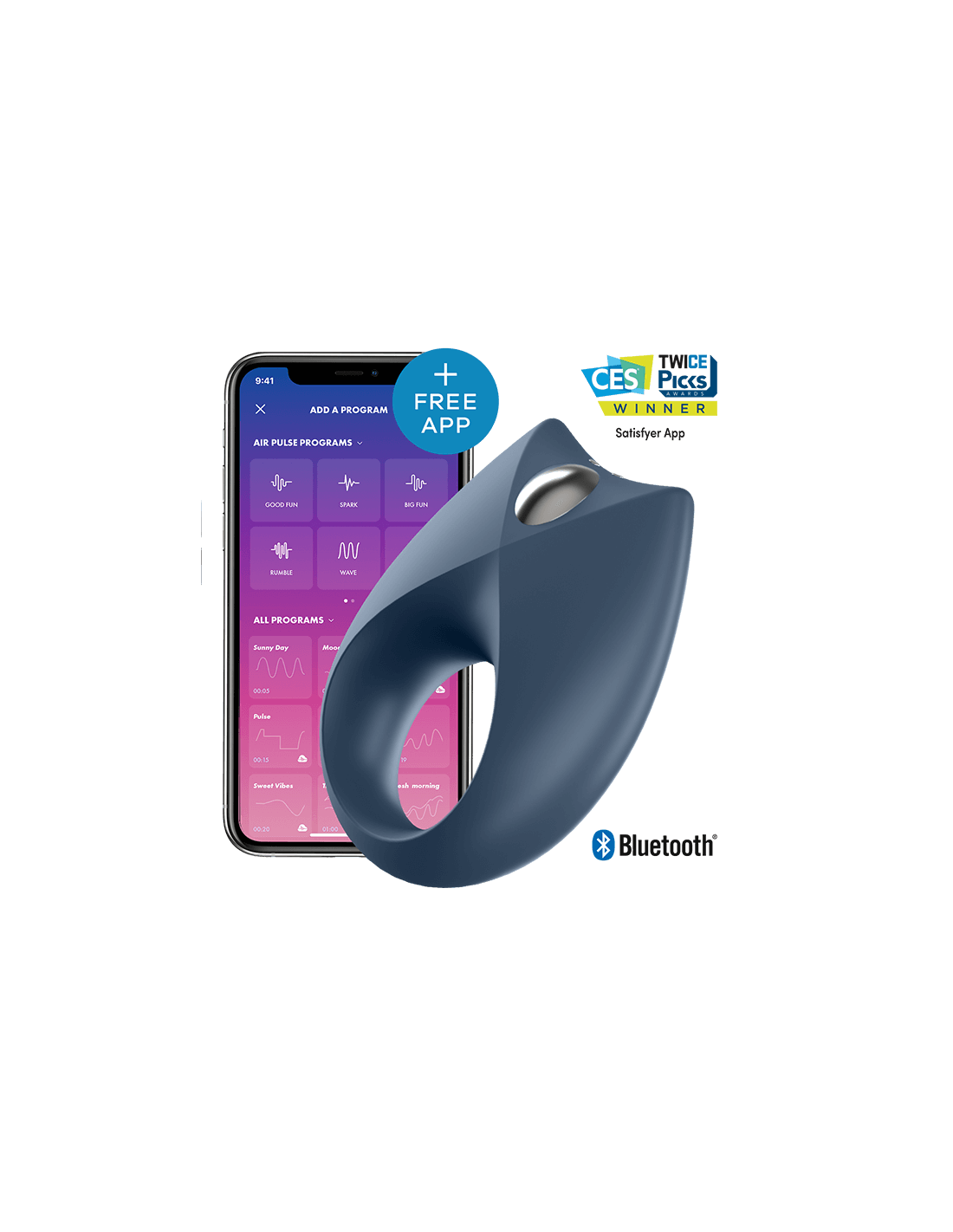 No debe perderse esto: ¡la nueva aplicación Satisfyer Connect le ofrece oportunidades únicas! Es compatible con cualquier teléfono inteligente, tableta Android o Apple y Apple Watch. Y lo mejor de todo: es gratis para usted y le esperan funciones nuevas y emocionantes cada mes. No es de extrañar que la aplicación Satisfyer Connect haya sido honrada en la feria de electrónica de consumo más grande del mundo CES en Las Vegas.