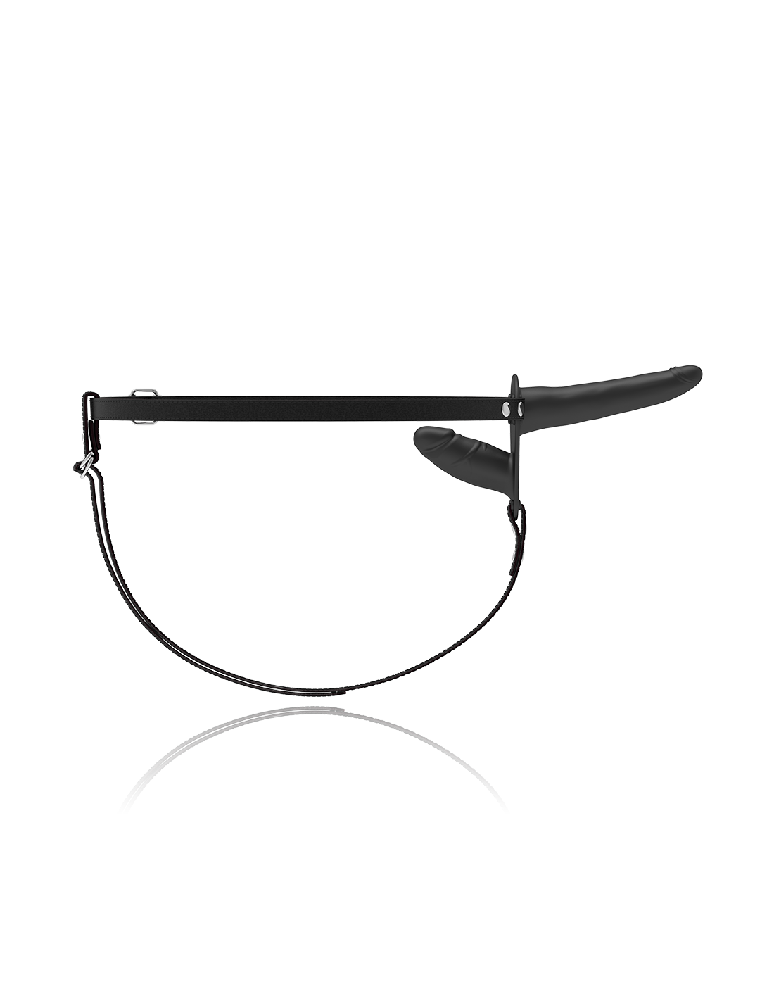 Arnés doble penetración ajustable a cualquier talla de cadera, incluso las más grandes. El dildo está fabricado en silicona de primera calidad.