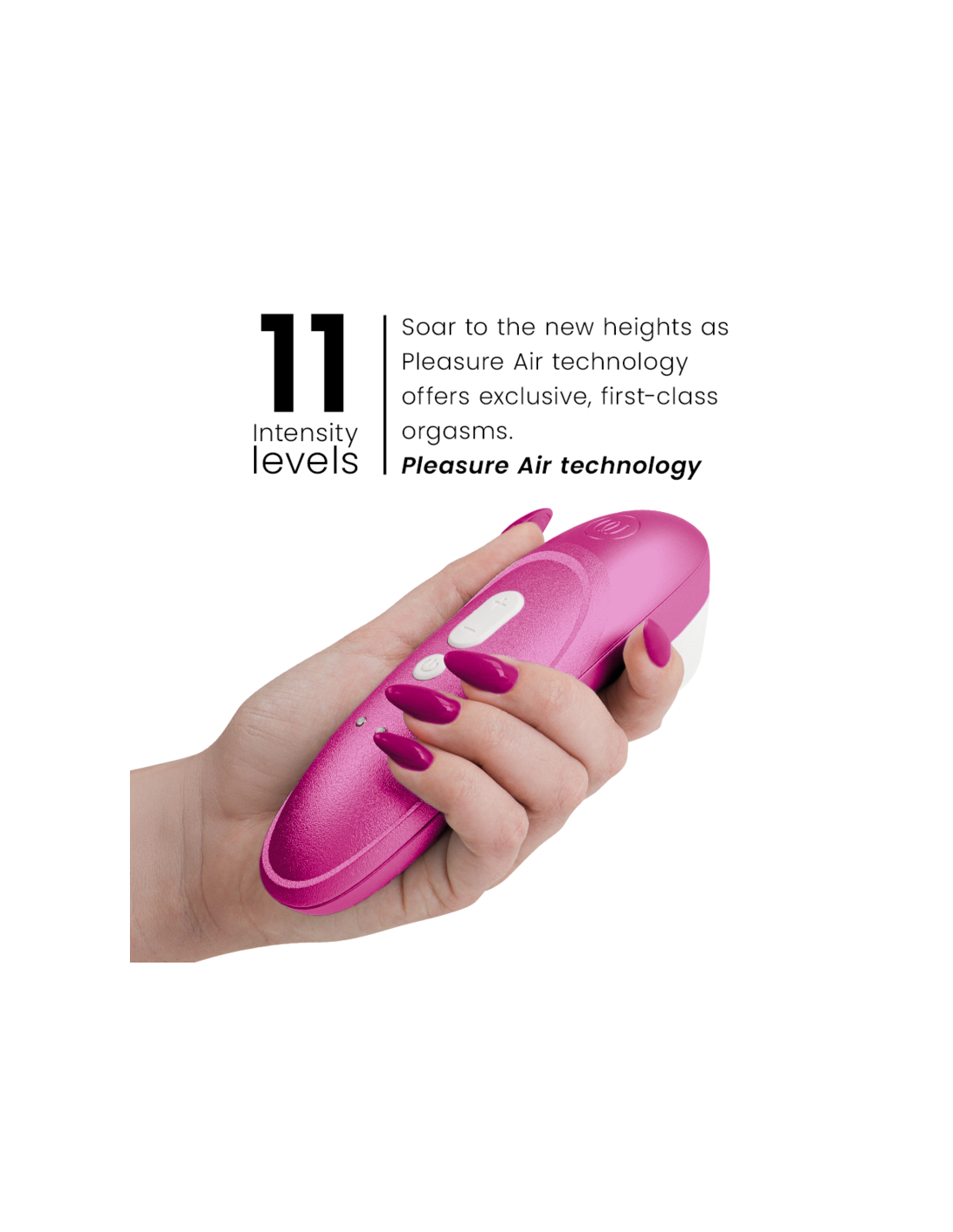 11 niveles de intensidad - Totalmente personalizable según tu gusto. Tanto si prefieres un inicio suave y sensual como si buscas una estimulación más potente e intensa, puedes cambiar fácilmente entre sus ajustes gracias a sus controles intuitivos diseñados para el enfoque total en el momento.
