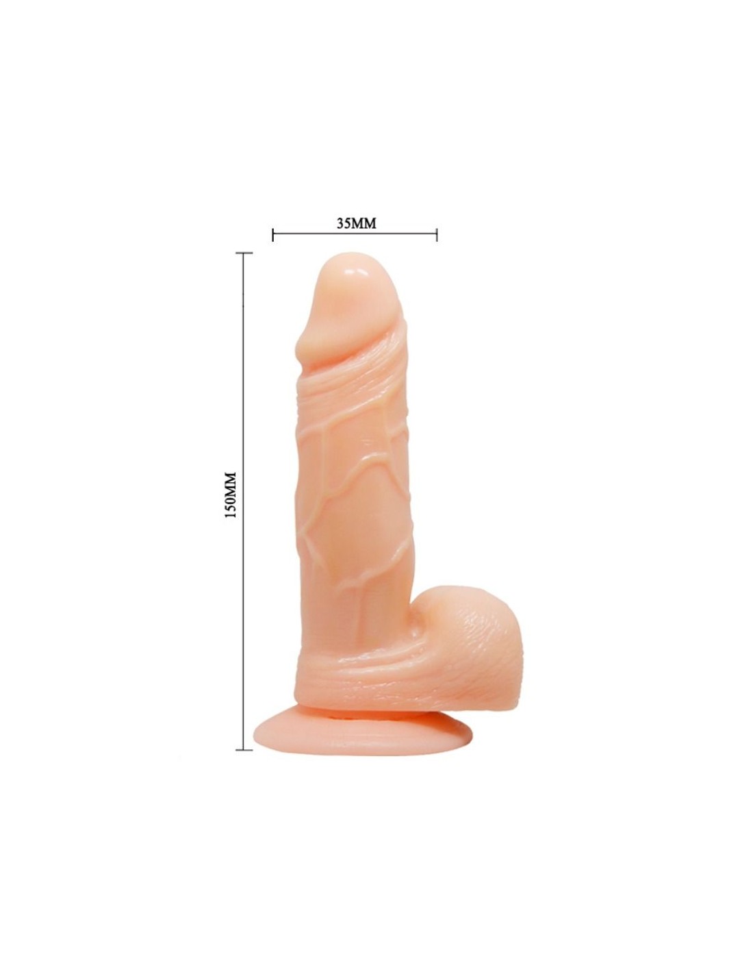 Es flexible y de textura suave para la sensación más real. Su suave eje texturado cuenta con elementos realísticos como una cabeza bulbosa y los testículos firmes. Gracias a una ventosa en la base puedes fijarlo en cualquier superficie lisa para usarlo sin la ayuda de las manos.