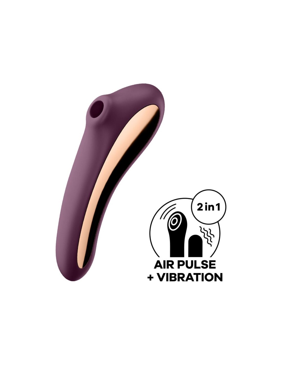 Satisfyer Dual Kiss puede ser útil de muchas maneras: El vibrador de ondas de presión fabricado con silicona inocua para el cuerpo también se puede utilizar como un vibrador de punto G y satisface todos tus deseos. Permite que el cabezal de contacto circular te mime con las sensuales y vibrantes ondas de presión el clítoris o disfruta de unos masajes estimulantes del punto G gracias a su mango ligeramente curvado que vibra. ¡Gracias a su aspecto elegante y sus refinados detalles metálicos es también verdaderamente atractivo!